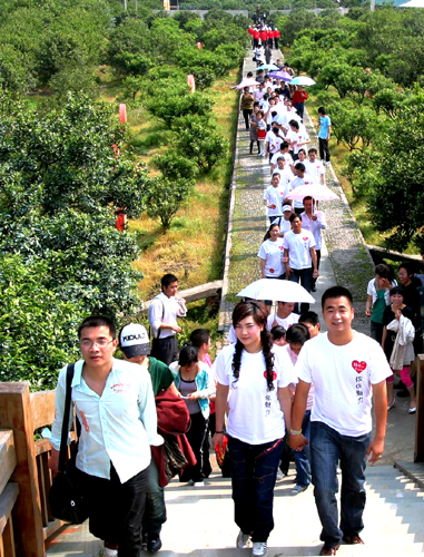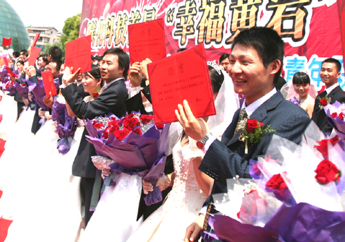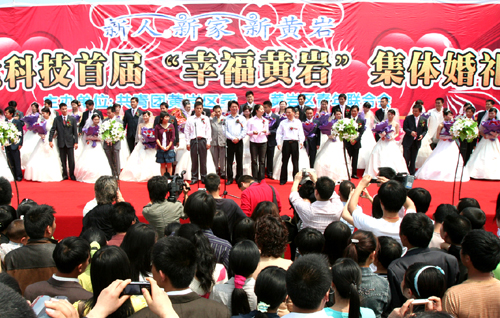 今天上午,一对对新人在花童的引领下,携手穿过鲜花搭建的“幸福之门”。当天,黄岩区28对新人在永宁公园举行题为“新人新家新黄岩”的集体婚礼,仪式结束后,新人们还游览了锦绣黄岩,并在中国柑橘观光园种下了见证他们爱情的同心树。