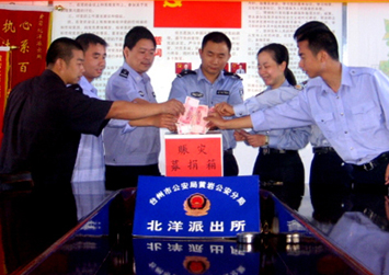 今天上午,黄岩公安分局北洋派出所民警一上班就为灾区人民捐款,为灾区重建家园献上自己的一份爱心。