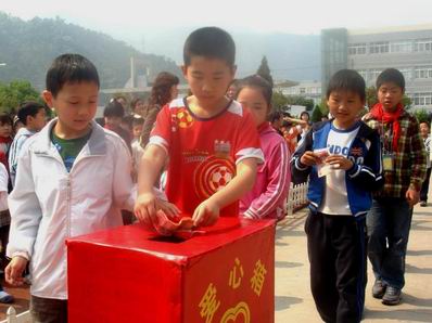 5月14日上午,东城街道妇联和该街道中心小学联合开展了“伸出援助之手、献出一片爱心”为四川地震灾区献爱心活动。在本次活动中,全校师生2000多人共募集善款88000多元,并将全部捐款直接转交给中国红十字会。图为该校学生为灾区人民踊跃捐款的情景。