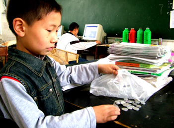 上郑学校一2班的学生们,几个月前还刚刚接受了爱心人士的捐助,当他们知道四川地震灾区倒塌的学校后,都伤心地哭了,纷纷拿出自己存了大半个学期的硬币,要送给灾区的同学们。