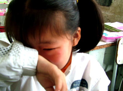 听着老师的介绍,想想灾区同龄人的遭遇,班上的小女孩哭得很伤心。