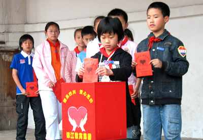四川地震灾区人民的安危,牵动着黄岩区锦江教育集团师生们的心,锦江教育集团在第一时间就发出了“爱心捐款倡议书”,5月15日下午,学校又发动了全体师生开展“情系四川,爱心无价”向地震灾区人民捐款活动,师生们充分发扬“一方有难,八方支援”的精神,踊跃奉献自己的爱心,短短的几个小时,3000多名师生共得捐款316500多元。其中学生捐款就有27万多,还有一位老师和一个同学在昨天就把捐款送到了市慈善总会。