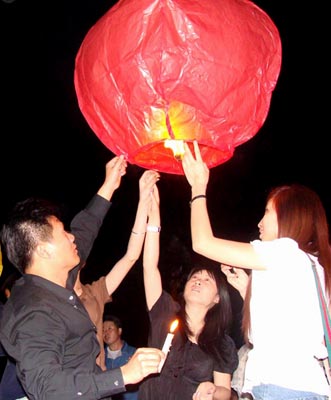 数千群众放孔明灯寄哀思