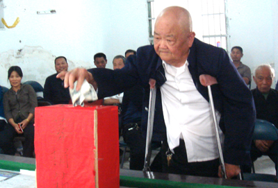 昨天,澄江街道后林村举行抗震救灾募捐主题会。闻讯起来的30名党员听了四川灾情及救灾中的感人事迹介绍后,全体肃立,为在大灾中遇难的同胞默哀。随后,刚当选的村党支部书记黄富友带头开始捐款。78岁高龄、双目失明的老书记林西华执意要参加捐款,在别人的搀扶下赶来了,95岁高龄的老党员鲍阿美,在别人的搀扶下,也拄着拐杖赶来了。听说村支部组织募捐,不少非党员群众也放下活儿赶来,小心翼翼地摸出一张张皱巴巴的“辛苦钿”,毫不犹豫地投入了箱子。