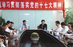10月25日上午,刚从北京出席党的十七大归来的十七大代表、市委常委、区委书记黄志平来到浙江拱东医用塑料厂,宣讲党的十七大精神,希望企业认真组织好各种形式的学习教育活动,自觉统一思想和行动,把学习贯彻十七大精神和推动新一轮创业创新紧密结合起来,以实际行动来贯彻落实十七大精神,推动黄岩经济社会又好又快发展。