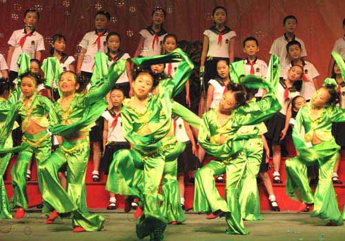 同学们的节目内容大多融合北京奥运、三字经、经典诗词等元素,并将单纯的朗诵结合小品、歌舞、戏曲、相声等形式创新表演出来,令人耳目一新。