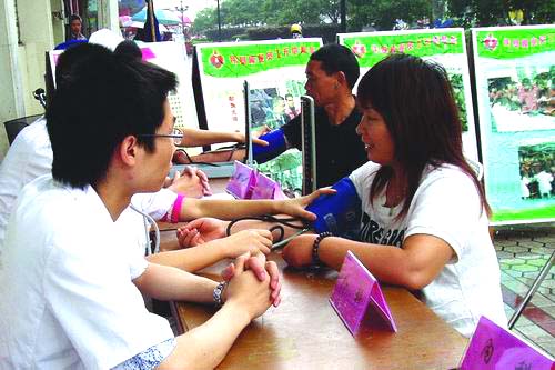 6月14日是“世界无偿献血日”,宣传主题为“定期献血”。6月13日上午,区卫生局、献血办组织了十几名卫生医务人员,冒雨在横街路口、新世纪广场开展了无偿献血宣传咨询服务活动。