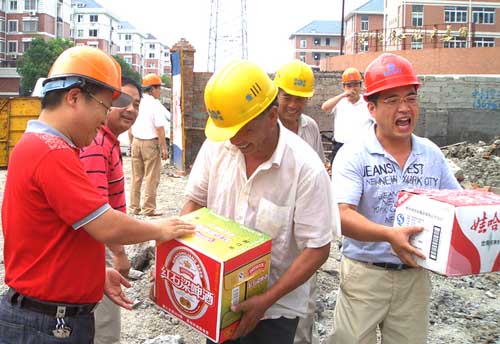 7月11日上午,黄岩自来水公司组织人员来到安装处南城、白杨新村、十五街坊等施工工地,慰问连日奋战在高温一线的职工,送上防暑降温用品。
