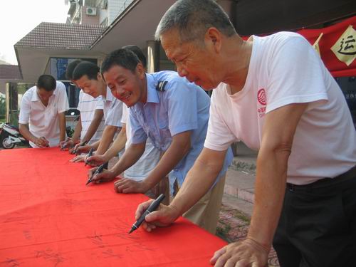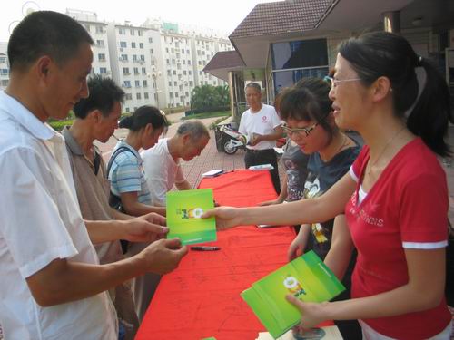 近日,黄岩区东城街道九峰社区在桔洲新村活动室门口开展“迎奥运、讲文明、树新风宣传活动”。在活动中向居民在本次活动中,社区工作人员向居民发放《环保新编100例》、《文明礼仪教育读本》、《公众防火应急手册》等宣传资料,并在现场开展了“我为奥运加油签名活动”。