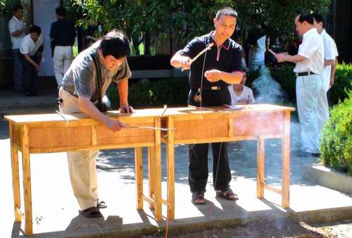 8月2日上午,全区160多名工会专职干部聚集在总工会前塔苑内,参加一场“迎奥运趣味运动会”。副区长吴继业参加了活动并为优胜者颁奖。图为“爆竹迎奥运”比赛现场。