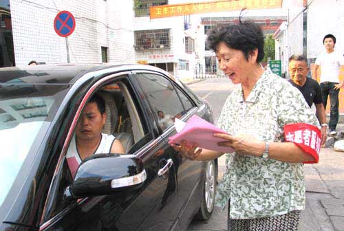 昨天下午,东城街道百花社区的志愿者巡逻队员正在发放社区文明停车倡议书。为推动文明城区的创建工作,东城街道在辖区内组建了一支庞大的社会工作人才志愿者服务队伍,其中包括环境卫生志愿者巡逻队、社区治安志愿者巡逻队、社会矫正工作志愿者、社区志愿者文艺宣传队等。