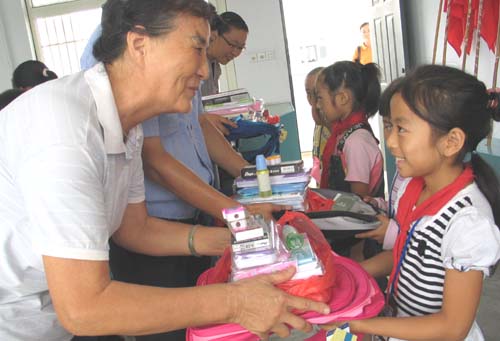 东城街道桔乡社区在社区里设立“爱心救助站”,开展“献出一片爱心,帮扶一个孩子”主题爱心救助活动,动员社区居民为贫困孩子奉献一片爱心。9月5日上午,该社区“爱心救助站”的工作人员带着学习用品,来到该街道镇东小学与10位地震灾区孩子进行帮扶结对活动。