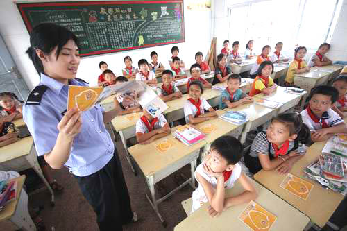 “陌生人给的东西不能吃!”“下课后回家不能走在机动车道上……”,为提高小学生的安全意识,黄岩公安分局江口派出所民警给小学生们上起了安全课,用小学生们喜欢的卡通图片和顺口溜,将一些常用的自我安全防范知识教给小学生们。瞧,小学生们听得多认真!