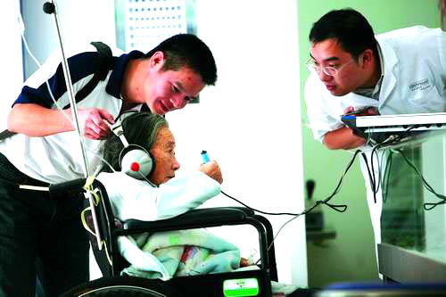 “你听见声音了吗?”10月14日上午,在区残联,一名残疾老人正在听力测试室接受医生测试。从今年8月份开始,区残联工作人员走村入户,对全区残疾人进行了一次康复需求调查,对符合条件的听力残疾人赠送助听器,现在已配齐272台助听器,将在本月内发放到他们手中。