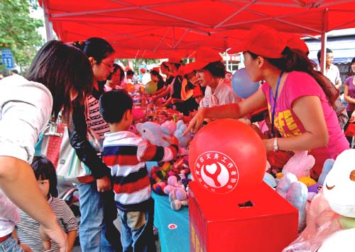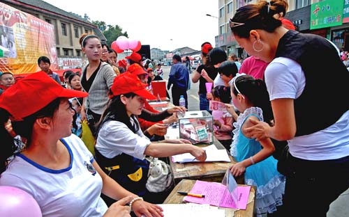 “我捐了100元,希望伟伟姐姐早日康复!”小女孩杨智一对记者说。9月19日上午,黄岩区院桥镇爱心涌动,黄岩义工为该镇患病的21岁女大学生陈伟伟开展了“永不放弃,走进院桥”义演义卖活动。 当天上午,来自区建设局、关工委等单位及学校的爱心人士都参加到表演中来,人们纷纷伸出援助之手往募捐箱中投进了自己的一份份爱心。据统计,本次义演义卖活动一共募捐到了3万多元。图为当地群众为陈伟伟治疗疾病踊跃募捐。