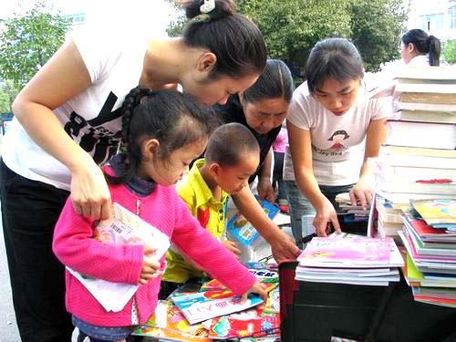 今天早上,黄岩慈光幼儿园小朋友们正在家长的带领下在校门口选购儿童读物。据了解,流动书店根据不同时间段各地人流量的情况到各地方进行售书活动,由于其书价要比正规书店要便宜一半左右,所以购书的人是络绎不决。