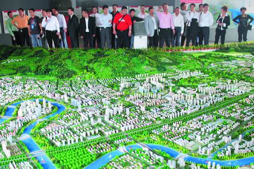 11月7日,在黄岩规划管理处,黄岩籍工商界人士正在参观我区城市总体规划。当天,我区举行台州商人大会黄岩恳亲活动,让回乡的工商界人士感受黄岩的发展。区领导李建安、杨小崇参加活动。