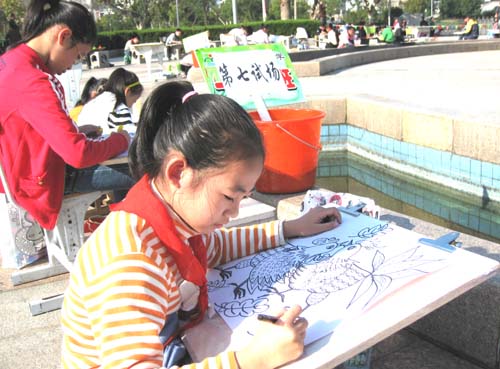 广场绘画比高低