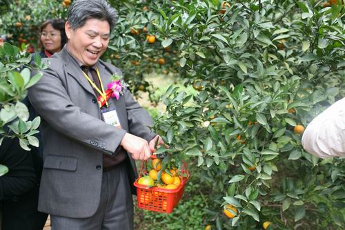昨天上午,黄岩区第十届中国黄岩柑橘节开幕式暨中国柑橘博物馆黄岩名人馆落成仪式在澄江柑橘观光园盛大开幕,来自全国四面八方的友人汇集于此,参加了本次开幕仪式,同时也在观光园里亲身体验了采摘黄岩蜜桔的快乐。图为游客正在柑橘观光园采摘桔子。