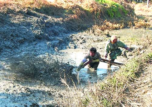 冬季是兴修水利的大好时节,我区各地的河道疏浚整治工作正如火如荼地进行着。图为工人在西城街道半洋崔村的河道里进行干水作业。