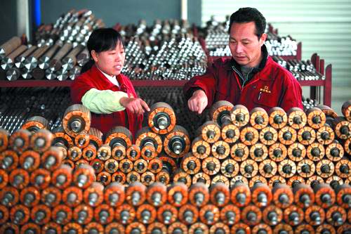 昨天,在黄岩电机厂,两名员工正在半成品仓库查看电机产品。受国际经济危机影响,我区许多企业生意淡了,订单少了,日子难过了。但他们坚持不裁员或不降薪,表示有信心平稳“过冬”,让员工安心工作。