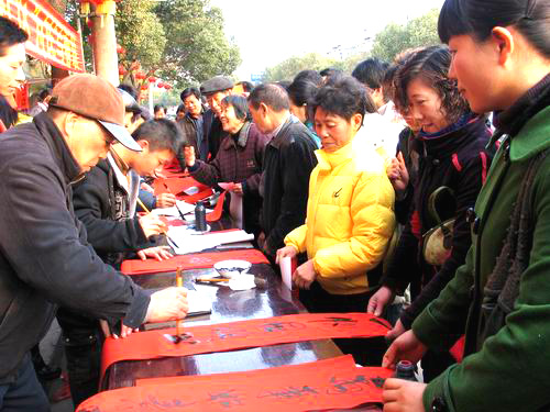 老少同台为民写春联