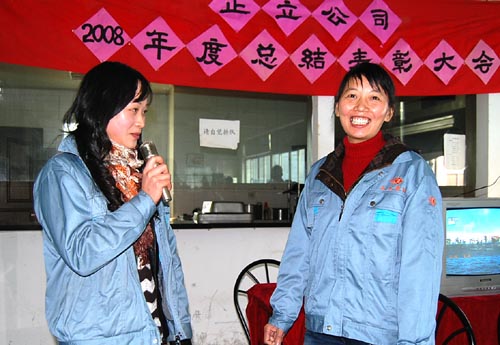 1月22日下午,台州正立塑模制造有限公司的100多位职工欢聚一堂,共享欢乐时刻。在这次联欢会上,员工准备了歌曲、相声、舞蹈等丰富多彩的节目,引得大伙儿乐开了怀。 图为员工正在高歌。