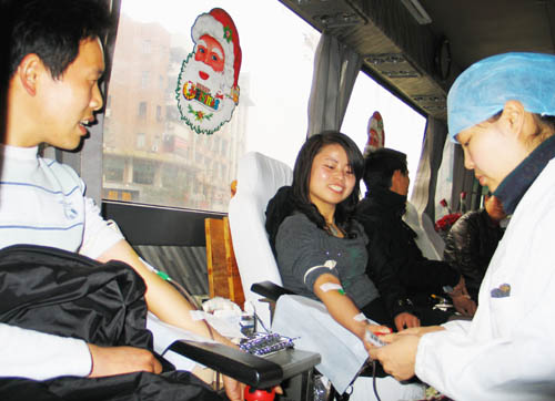 2月14日,黄岩区30岁的洪小军和28岁的喻再利夫妻俩双双参加无偿献血来,这是他俩第二次以这种方式过情人节,他们表示以后还将继续以这种方式来欢度这一节日。
