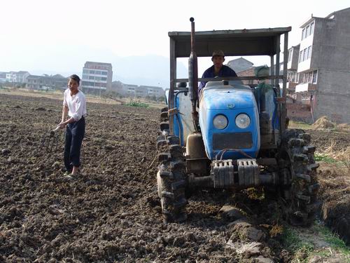 今年中央一号文件下达后,极大地调动了农民春耕备耕的积极性,连日来,在院桥镇广袤的乡间田野,只见一台台“铁牛”不停地欢叫奔忙,处处可见农民春耕忙碌身影。图为是2月13日下午,该镇种果蔗大户屠志清(左)正在新承包田里翻耕。