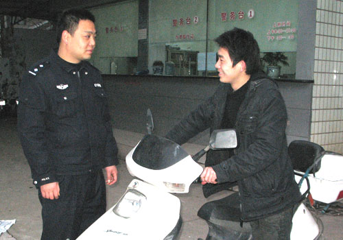 3月7日晚上,黄岩区院桥镇男青年小陈来到该区城西派出所领回了他的一辆被盗摩托车。2月27日晚上,黄岩区公安分局城西派出所刑侦队民警在杜家村桥头成功抓获了3名贵州籍嫌疑人,同时在现场还查获一辆可疑摩托车。经查,这辆被查获的摩托车系小陈上班途中的“坐骑”,当日下午3时左右停在北城工业区一模具厂前被盗。