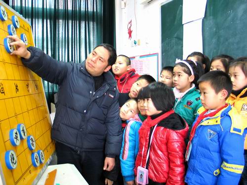 黄岩滨江小学为了进一步弘扬校园文化,活跃学生们的业余生活,学校从去年开始,就把象棋、乒乓球、围棋等传统文化引入课堂教学,经过一年来的教学实践,取得了显著效果,得到了学生及家长的认可。图为3月12日下午,黄岩区优秀象棋教练员正在三(2)班指导小学生下象棋。