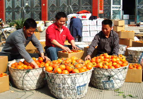 获得浙江省无公害产品基地和浙江绿色农产品、国家级无公害农产品等称号的院桥镇“晨阳”牌番茄,去冬种植6500多亩反季节番茄,自从成熟采摘一上市以来,就成了省内外市场的“抢手货”,且价格一天比一天高,每公斤都在3.0—3.3元之间,畅销台州、杭州、宁波等省内城市以及省外的南京、常州、上海等大中城市,预计全镇今年番茄经济收入可达7000多万元,成为院桥农民增收的“摇钱树”。图为是3月17日上午,该镇的番茄种植大户杨崇森(中)正在装箱刚从大棚里采收来的番茄,准备运往市场。