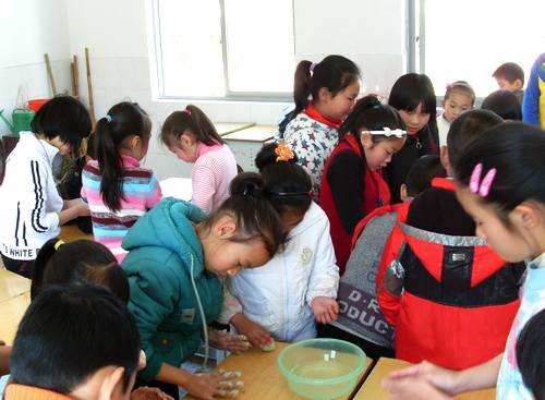 清明节即将临近,为了让学生更多的了解清明这个传统的节日。近日,宁溪镇中心小学大队部举办了“三月春来又飘香”的清明节综合实践活动。学生们在辅导员的带领下,采摘鼠曲草、做青团,在实践活动中做得不亦乐乎。通过这一活动,同学们也对清明节有了更深刻地了解,也明白了青团的制作过程。图为学生们正在自己动手揉青团。
