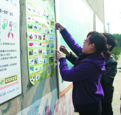 今年以来,各级政府相继出台了一系列惠农政策,高桥街道大学生“村官”积极发挥宣传员作用,通过编发农情短信、印发宣传资料等形式,宣传党和政府的惠农政策。图为该街道大学生“村官”正在张贴我省2009年农机购置补贴政策宣传图片。