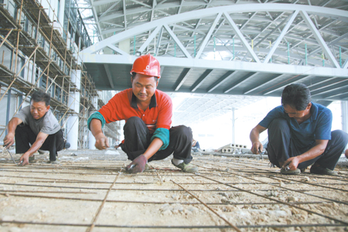 离十月一日甬台温铁路开通动车组的日子越来越近,台州站、站前广场、站前道路等各项重点工程也进入了最后的冲刺阶段,各个施工单位加班加点,各项目进程很快。图为工人正在台州火车站月台施工。