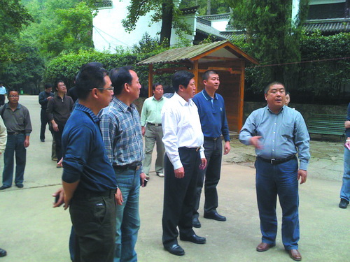10月16日下午,副市长叶阿东率市级有关单位负责人来到我区污水处理厂、垃圾处理场、九峰公园,督查国家园林城市创建工作相关情况。区委常委、常务副区长朱坚国陪同。图为督查人员在九峰公园检查。