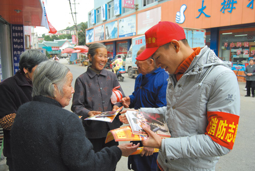 近日,区消防大队工作人员和二十余名消防志愿者在西城街道横河村开展消防知识普及宣传活动。活动中,消防志愿者向过往群众发放新《消防法》手册、《浙江消防》杂志、《家庭防火自救常识》等各种消防安全宣传资料,并深入沿街的各家店面,向经营户耐心讲解消防安全基本常识。
