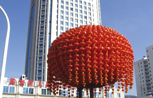 近日,北门广场北侧立起了一盏超大型灯笼。据了解,该灯笼直径8米,高达7米。
