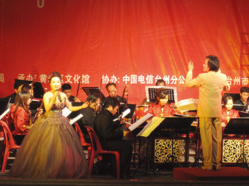 2月22日晚上的黄岩影城乐声悠扬、歌声响亮,洋溢着节日的喜庆气氛,区第十三届新春音乐会正在这里举行。音乐会节目丰富多彩,以器乐合奏《龙腾虎跃》奏响了序幕,此外还有扬琴独奏、弹拨五重奏以及男声独唱和女声独唱等。图为女声独唱《好日子》。