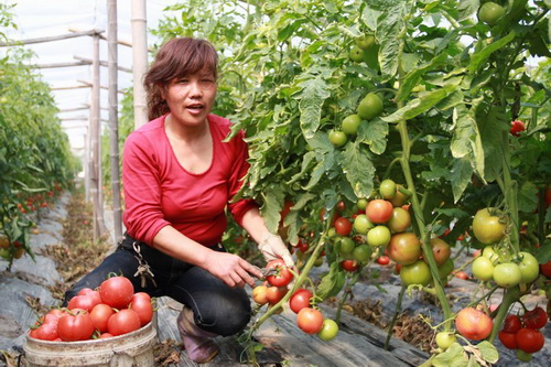 近日,院桥镇的农民们高兴地忙着开始采摘今年大棚种植的第一茬番茄。据悉,院桥“晨阳”牌番茄获得浙江省无公害产品基地和浙江绿色农产品、国家级无公害农产品等称号,去冬该镇种植的6500多亩反季节无公害“晨阳”牌番茄,广大番茄种植户克服连续低温恶劣天气,加强大棚管理和科技种植,目前已成熟,番茄一上市就成了省内外市场的“抢手货”,但价格又比去年高,以每公斤在3.0元,纷纷被台州、杭州、宁波、南京、常州、上海等省内外大中城市的客户预订,产品供不应求,番茄成为院桥一项农民增收的特色产业。图为是该镇的番茄种植大户张菊荷正在大栅内采收番茄。