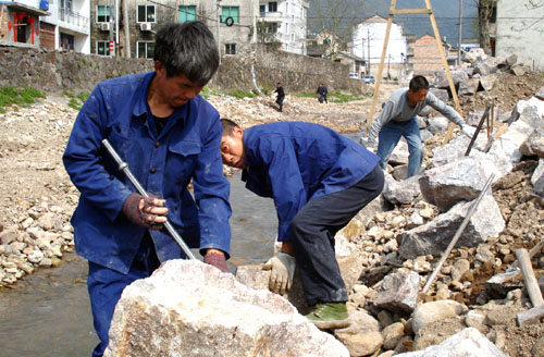 3月19日,茅畲乡下街村组织村民疏通九溪,加固防洪堤坝,保障春耕生产。