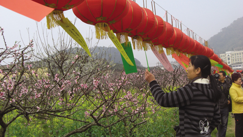 3月19日,2010年北洋镇毛坦桃花节开幕。游客徜徉花间,体验花如潮的美丽胜景。据悉,此次桃花节为期12天。除了赏花外,毛坦村还推出了烧烤、摄影和农事体验等活动。图为游客在参加猜谜活动。