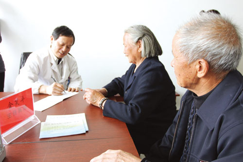 5月10日下午,参加市拔尖人才黄岩行活动的8名医疗专家,在院桥中心卫生院开展义诊活动,义诊科目有心血管内科、外科、呼吸科、神经科等,给当地群众送上了一道丰盛的医疗卫生“大餐”。图为神经科专家金笑平正在为一位老人诊疗。