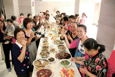 一个人做一道菜,一群人吃一百多道菜。6月9日,县前社区的“百家宴”活动改变了邻里之间“一墙之隔不通气,一年四季不来往,擦肩而过不说话,楼上楼下不知姓”的疏远现状。社区居民、乡里乡亲聚在一起吃美食,聊家常,享受的是一份温馨的邻里情。