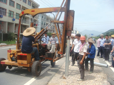 为加快82省道延伸线山头姜至康山段的安保工程建设,近期,区交通局冒着酷暑,现场督促施工单位对部分道口进行封闭。图为施工人员在安装钢架防护栏。