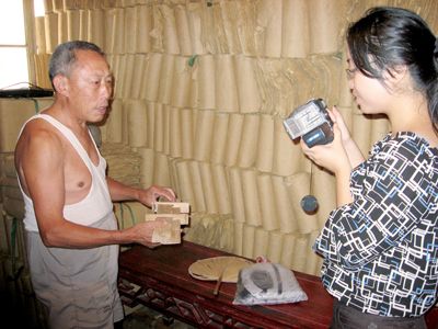 近日,区文化馆工作人员在宁溪镇等地对民间艺术传人进行走访,用录像、录音、照片、文字、曲谱进行完整记录,并将用光碟等手段进行保存,为各种民间艺术编写传记。图为工作人员在岭根村采访竹纸制作艺术。