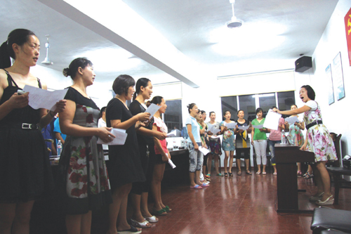 “让我告诉世界中国命运自已主宰,让我告诉未来中国进行着接力赛……”9月9日晚,院桥镇横林村农民学习会馆里,一曲嘹亮的《走进新时代》为安静的农村增添了别样的热闹。村民还专门请来中学音乐老师来现场指导,大家学得特别认真。