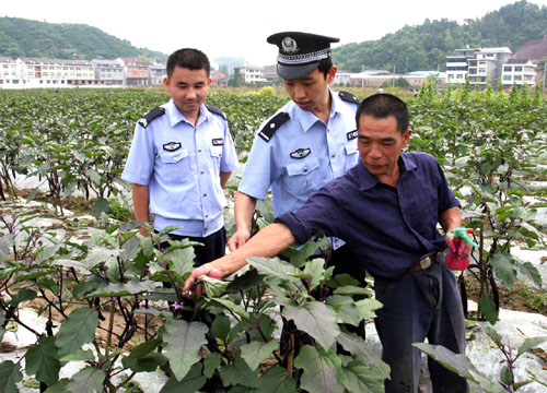 为切实掌握农村治安动态,维护治安秩序,黄岩公安分局要求派出所民警勤下村居,和群众打成一片,了解第一手的治安动态,同时开展防范宣传,提高群众防范不法侵害的能力,图为该局北洋派出所民警正在田头和群众拉家常的情景。
