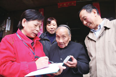 “你们来啦,欢迎欢迎!”昨天下午,东城街道塔苑社区101岁的陈桂香老人看到普查员前来非常高兴,热情地出门迎接他们。11月1日至10日,第六次全国人口普查进入入户登记阶段。从11月1日上午开始,我区5000余名普查员佩戴统一的普查证,正式逐门逐户、逐人逐项地开展现场登记工作。图为塔苑社区普查员正在为百岁老人进行人口普查登记。