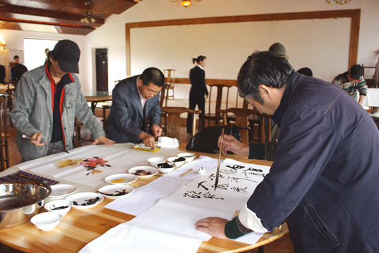 11月18日下午,区政协书画之友联谊会的20多名书画家来到新开办的头陀白湖塘农家乐园,开展送书画进农家活动。他们将当天创作的书画作品全部赠送给即将开业的白湖塘农家乐园,以实际行动支持我区“农家乐”建设和旅游事业发展。